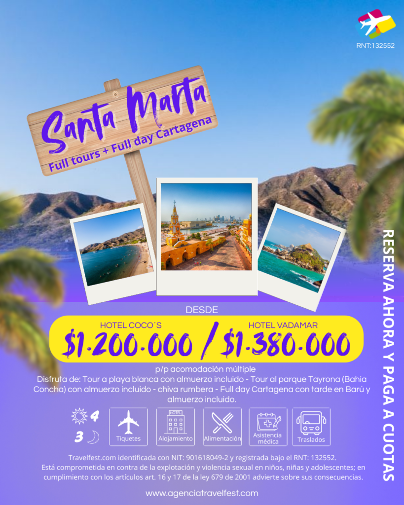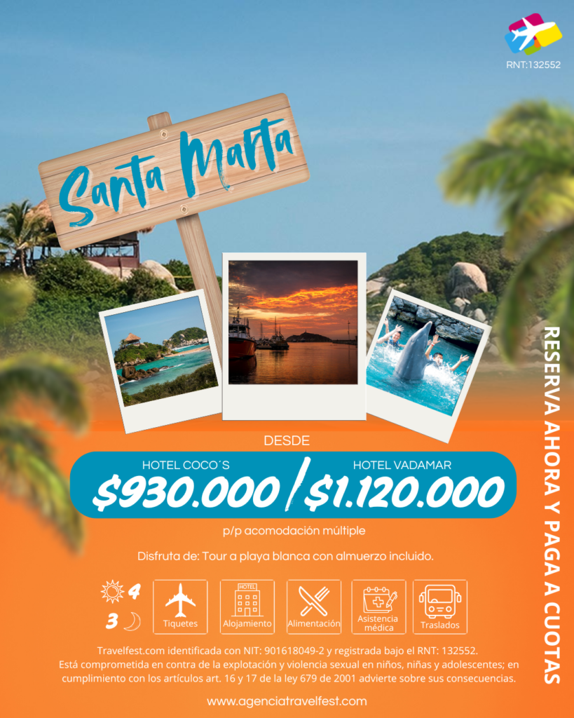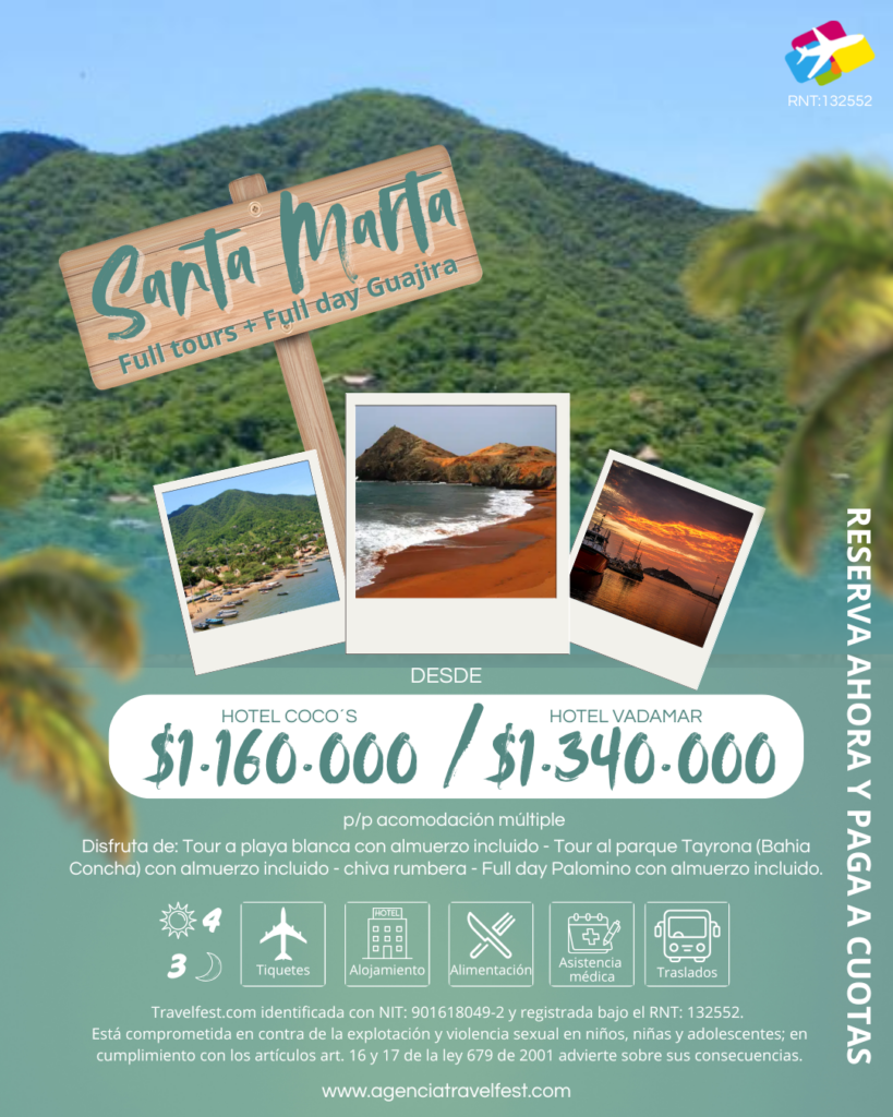 – ✈️ Tiquetes aéreos: Bogotá – Santa Marta – Bogotá.