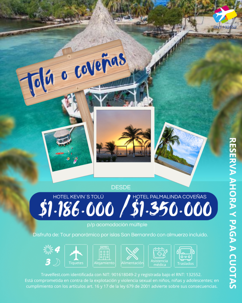 – 🚤 Tour: recorrido panorámico por islas San Bernardo y tarde de playa con almuerzo incluido.